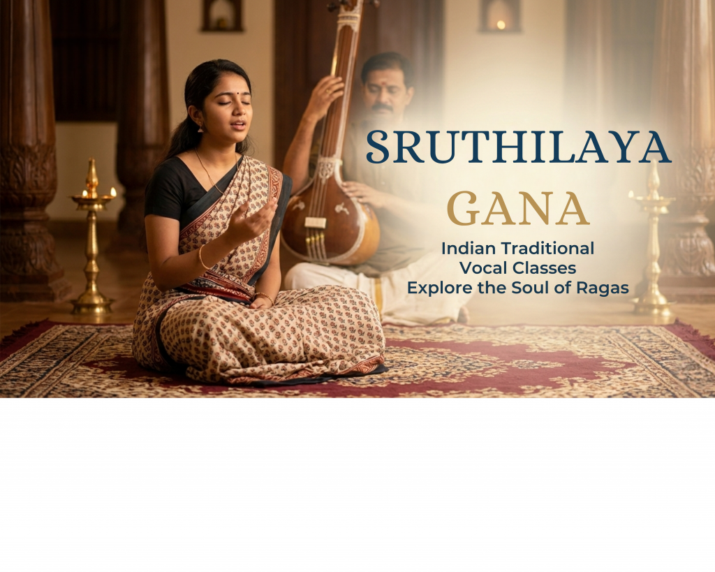 From beginners to advanced learners, our Gāna courses cultivate pitch, rhythm, and expression. Students learn systematically, guided by senior faculty, ensuring a deep understanding of both Carnatic and Hindustani traditions.